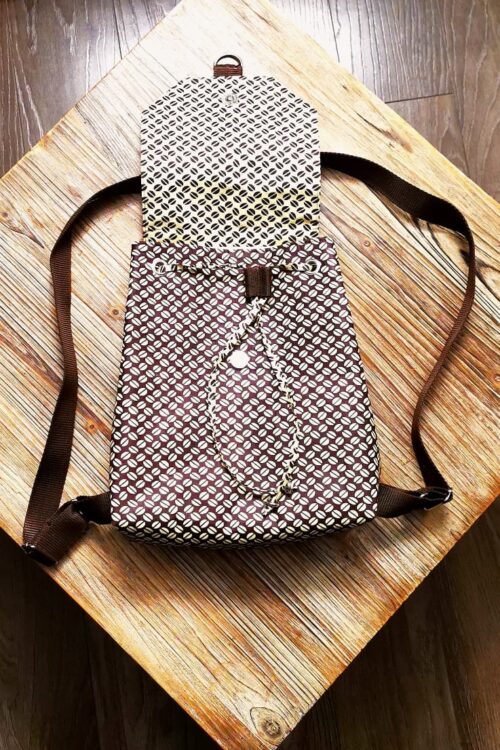 Cette jupe en wax 100% coton, doublé d’un joli satin beige