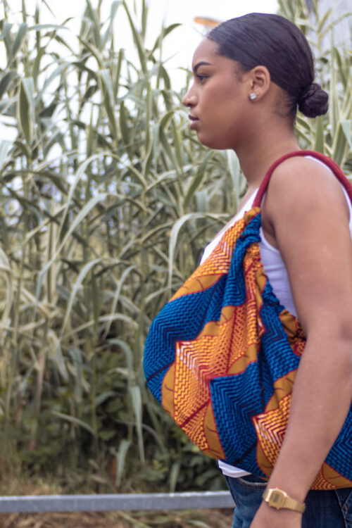Sac Cabas en wax, intérieur satin, poche extérieure zippée